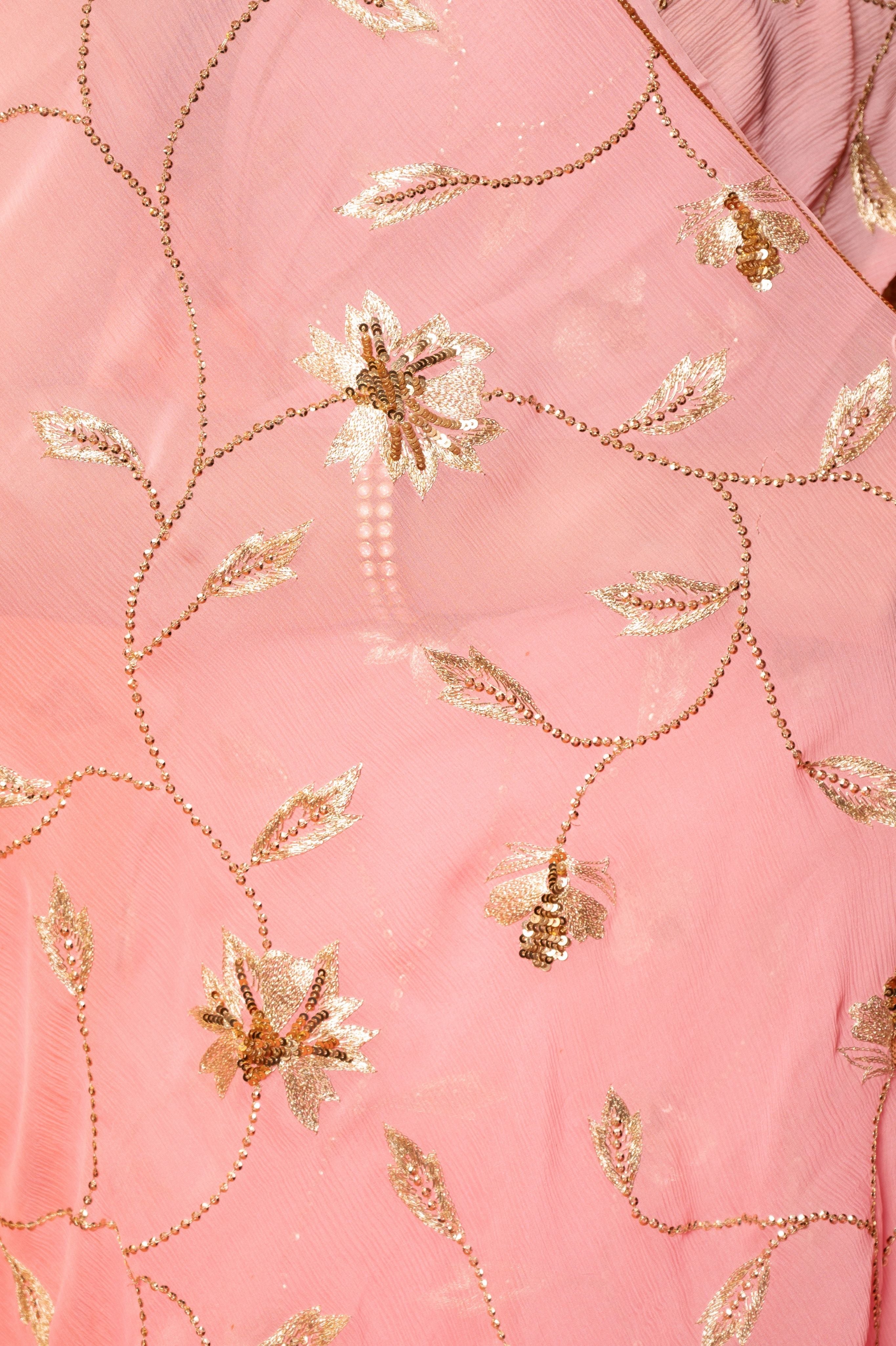 Pink light dark Pure Chiffon aari sequins jaal handwork saree